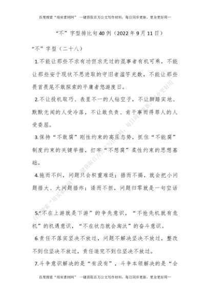 “不”字型排比句40例(XXXX年9月11日)[更多资源请百度搜索“培实素材网”]