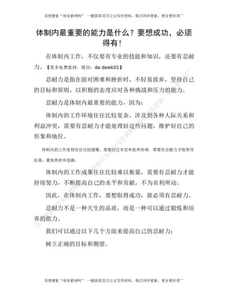 体制内最重要的能力是什么?要想成功,必须得有![更多资源请百度搜索“培实素材网”]