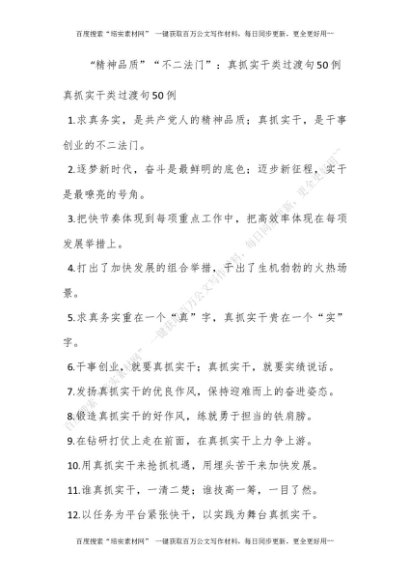 “精神品质”“不二法门”:真抓实干类过渡句50例[更多资源请百度搜索“培实素材网”]