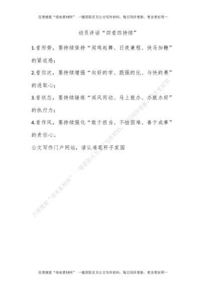动员讲话“四看四持续”[更多资源请百度搜索“培实素材网”]