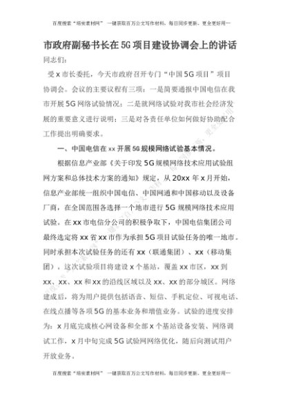 市政府副秘书长在5G项目建设协调会上的讲话[更多资源请百度搜索“培实素材网”]