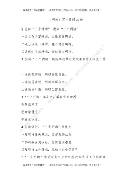 〔明确〕写作提纲30例[更多资源请百度搜索“培实素材网”]