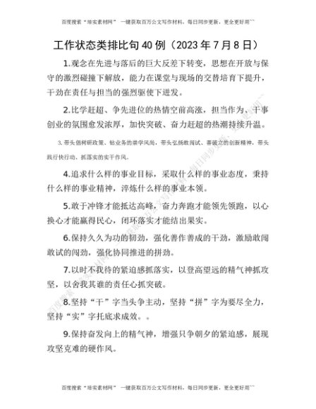 写作素材-工作状态类排比句40例(2023年7月8日)[更多资源请百度搜索“培实素材网”]