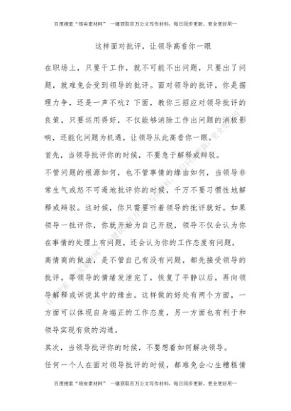 这样面对批评,让领导高看你一眼![更多资源请百度搜索“培实素材网”]