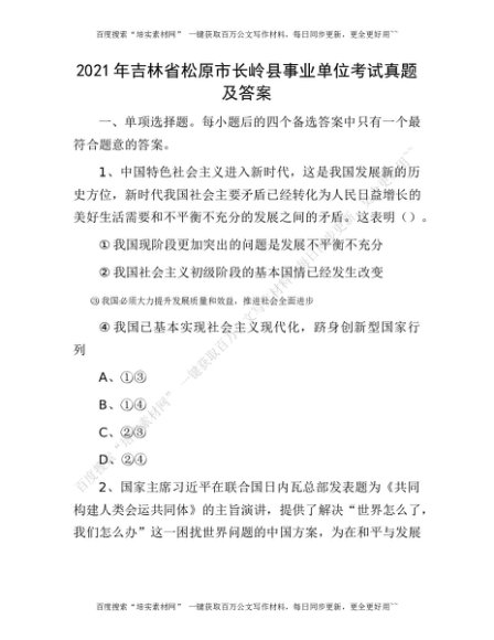 2021年吉林省松原市长岭县事业单位考试真题及答案[更多资源请百度搜索“培实素材网”]