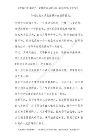 体制内没关系没背景如何获得提拔?[更多资源请百度搜索“培实素材网”]