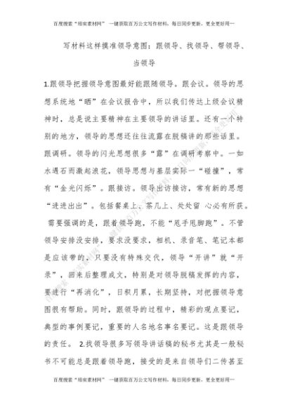 写材料这样摸准领导意图:跟领导、找领导、帮领导、当领导_1[更多资源请百度搜索“培实素材网”]