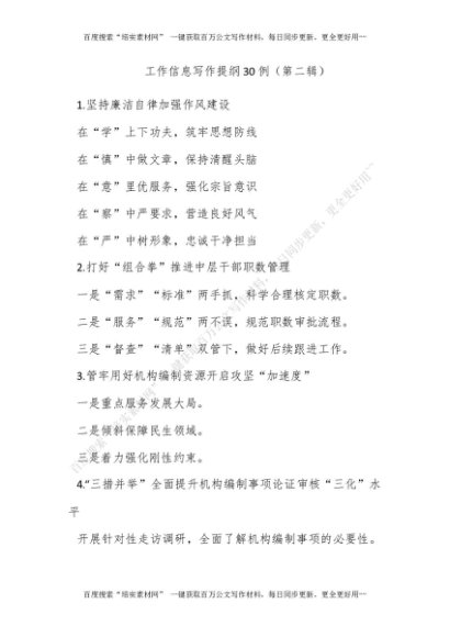 工作信息写作提纲30例(第二辑)[更多资源请百度搜索“培实素材网”]