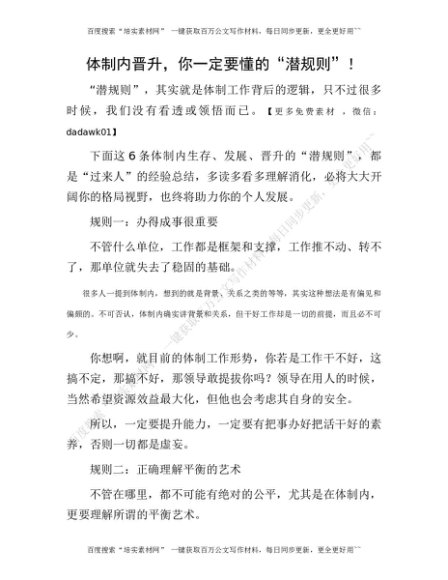 体制内晋升,你一定要懂的“潜规则”![更多资源请百度搜索“培实素材网”]