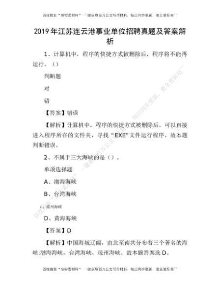2019年江苏连云港事业单位招聘真题及答案解析[更多资源请百度搜索“培实素材网”]