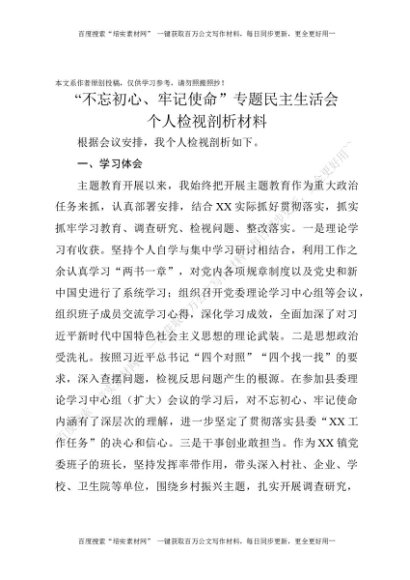 专题民主生活会个人检视剖析材料[更多资源请百度搜索“培实素材网”]