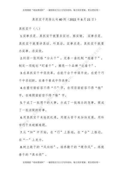 真抓实干类排比句40例(2022年6月21日)[更多资源请百度搜索“培实素材网”]