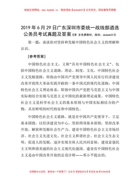 2019年6月29日广东深圳市委统一战线部遴选公务员考试真题及答案[更多资源请百度搜索“培实素材网”]