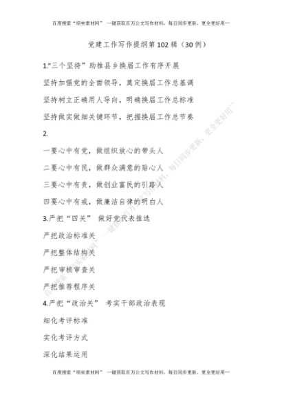 党建工作写作提纲第102辑(30例)[更多资源请百度搜索“培实素材网”]