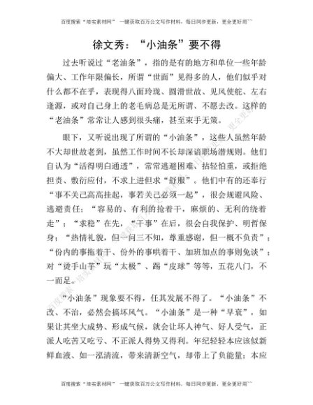 徐文秀:“小油条”要不得[更多资源请百度搜索“培实素材网”]