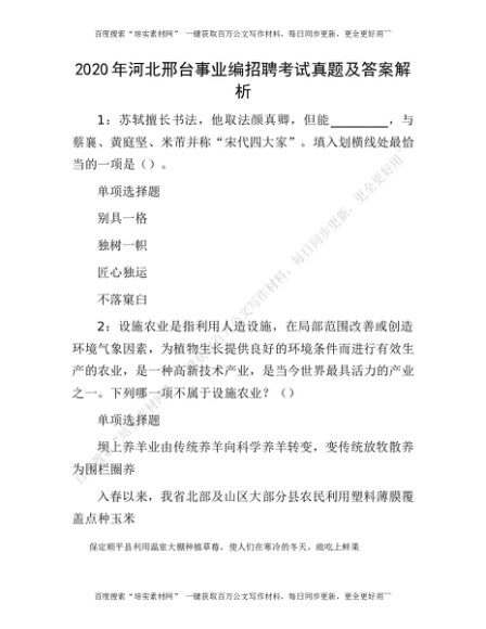 2020年河北邢台事业编招聘考试真题及答案解析[更多资源请百度搜索“培实素材网”]