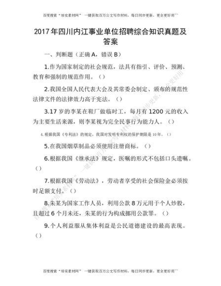 2017年四川内江事业单位招聘综合知识真题及答案[更多资源请百度搜索“培实素材网”]