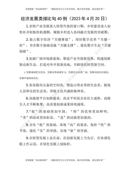 经济发展类排比句40例(2023年4月20日)(1)[更多资源请百度搜索“培实素材网”]