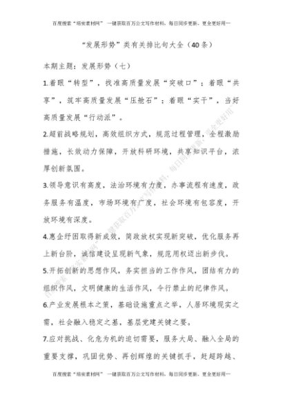 “发展形势”类有关排比句大全(40条)_5[更多资源请百度搜索“培实素材网”]