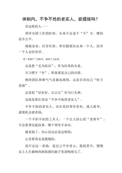 体制内,不争不抢的老实人,能提拔吗?(1)[更多资源请百度搜索“培实素材网”]
