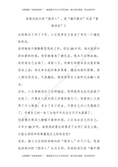 体制内的五种“隐形人”,是“躺平摆烂”还是“蓄势待发”?[更多资源请百度搜索“培实素材网”]