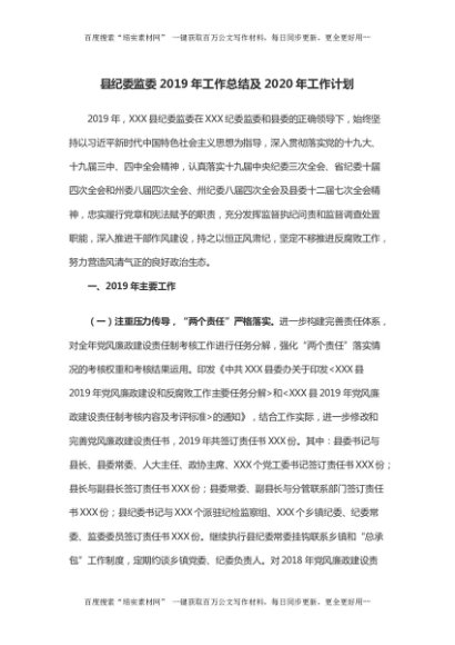县纪委监委2019年工作总结及2020年工作计划[更多资源请百度搜索“培实素材网”]
