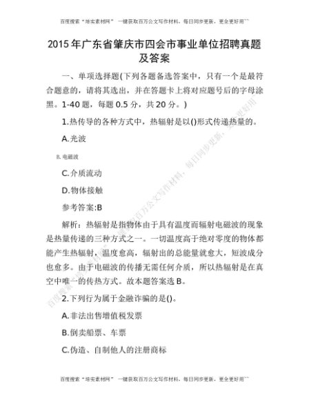 -2015年广东省肇庆市四会市事业单位招聘真题及答案[更多资源请百度搜索“培实素材网”]