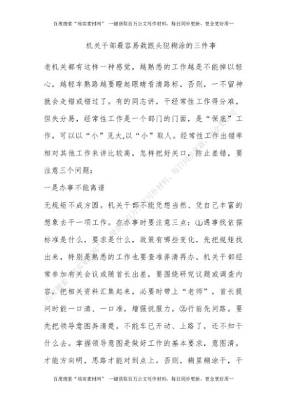机关干部最容易栽跟头犯糊涂的三件事[更多资源请百度搜索“培实素材网”]