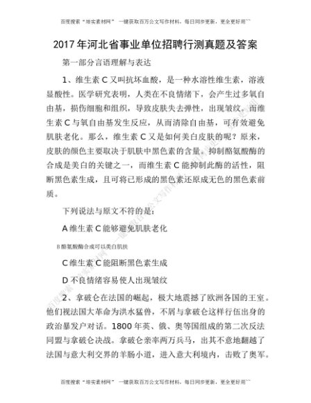 2017年河北省事业单位招聘行测真题及答案[更多资源请百度搜索“培实素材网”]
