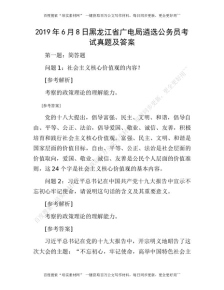 2019年6月8日黑龙江省广电局遴选公务员考试真题及答案[更多资源请百度搜索“培实素材网”]