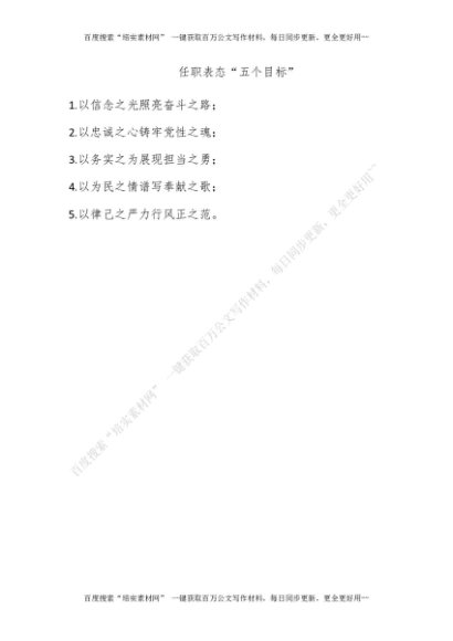 任职表态“五个目标”[更多资源请百度搜索“培实素材网”]