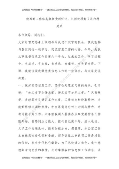 他写的工作信息频频受到好评,只因处理好了这六种关系![更多资源请百度搜索“培实素材网”]