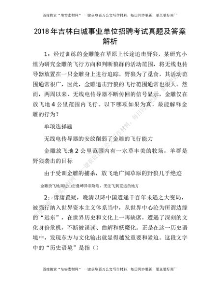 2018年吉林白城事业单位招聘考试真题及答案解析[更多资源请百度搜索“培实素材网”]