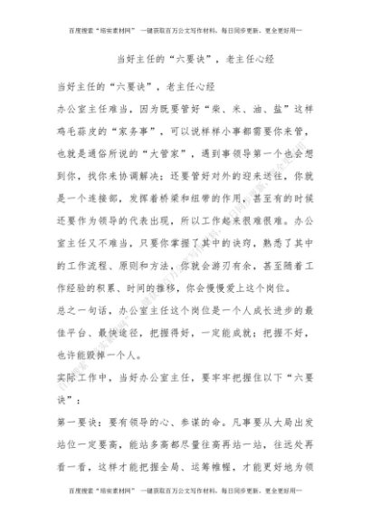 当好主任的“六要诀”,老主任心经![更多资源请百度搜索“培实素材网”]