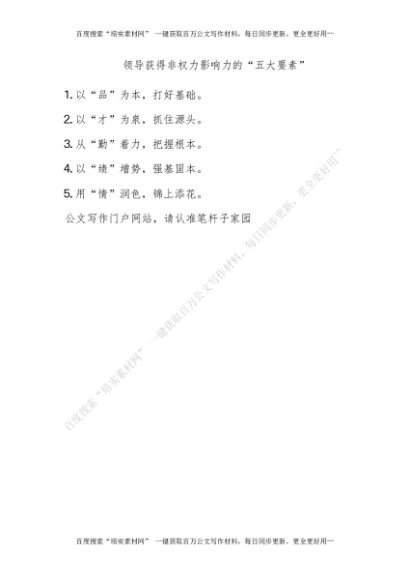 领导获得非权力影响力的“五大要素”[更多资源请百度搜索“培实素材网”]