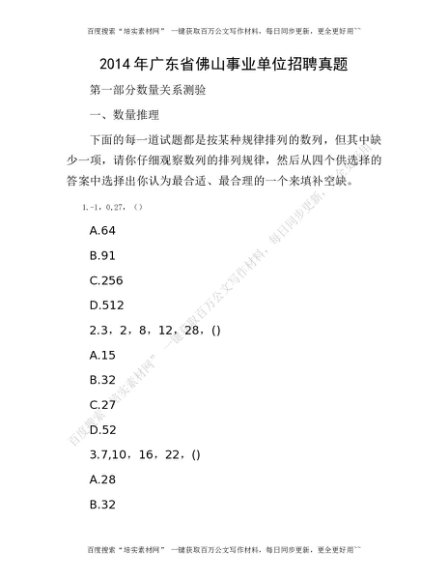 2014年广东省佛山事业单位招聘真题[更多资源请百度搜索“培实素材网”]