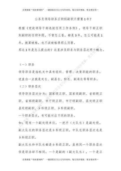 公务员领导职务正职到副职只需要1年?[更多资源请百度搜索“培实素材网”]