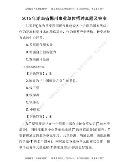 2016年湖南省郴州事业单位招聘真题及答案[更多资源请百度搜索“培实素材网”]