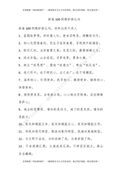 新春100例精妙排比句[更多资源请百度搜索“培实素材网”]