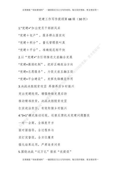 党建工作写作提纲第68辑(30例)[更多资源请百度搜索“培实素材网”]