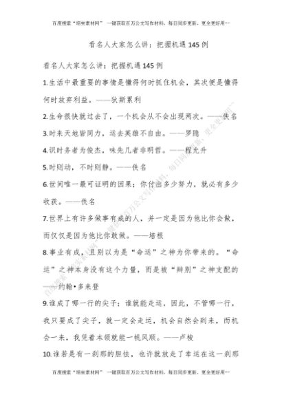 看名人大家怎么讲:把握机遇145例[更多资源请百度搜索“培实素材网”]