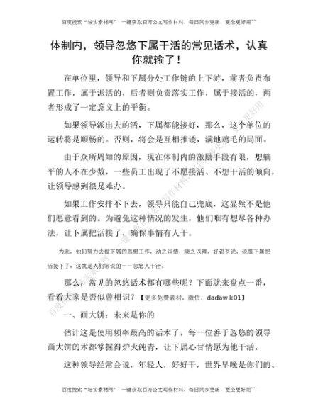 体制内,领导忽悠下属干活的常见话术,认真你就输了![更多资源请百度搜索“培实素材网”]