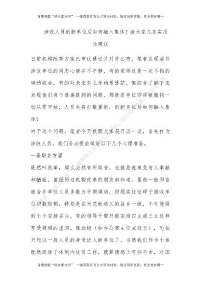 涉改人员到新单位后如何融入集体?给大家几条实用性建议![更多资源请百度搜索“培实素材网”]