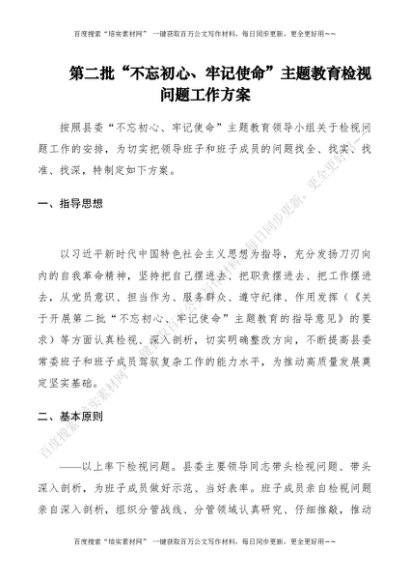 第二批“不忘初心、牢记使命”主题教育检视问题工作方案[更多资源请百度搜索“培实素材网”]
