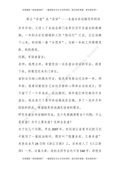 莫让“务虚”成“务实”——务虚会讲话稿写作例讲[更多资源请百度搜索“培实素材网”]