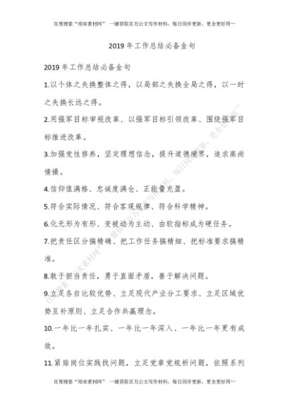 2019年工作总结必备金句[更多资源请百度搜索“培实素材网”]