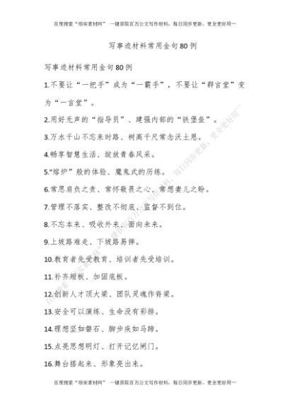 写事迹材料常用金句80例[更多资源请百度搜索“培实素材网”]