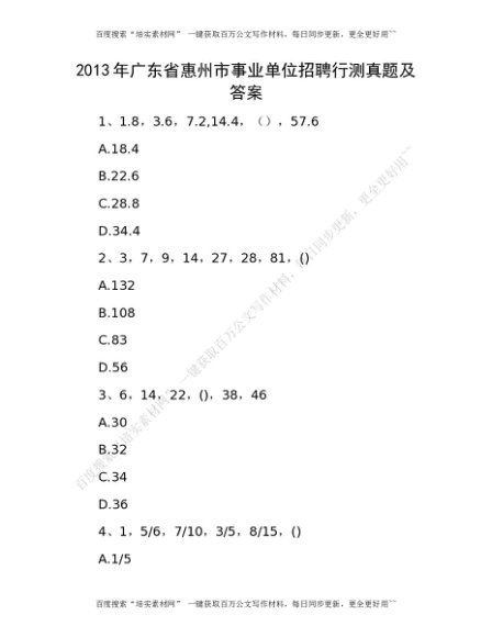 2013年广东省惠州市事业单位招聘行测真题及答案(1)[更多资源请百度搜索“培实素材网”]
