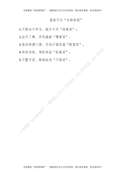 落实不力“五种表现”[更多资源请百度搜索“培实素材网”]