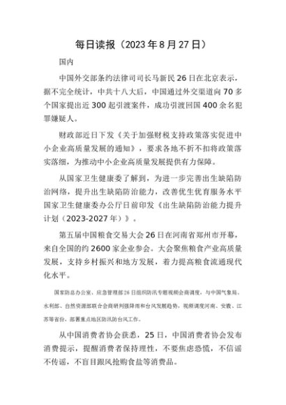 每日读报(2023年8月27日)[更多资源请百度搜索“培实素材网”]